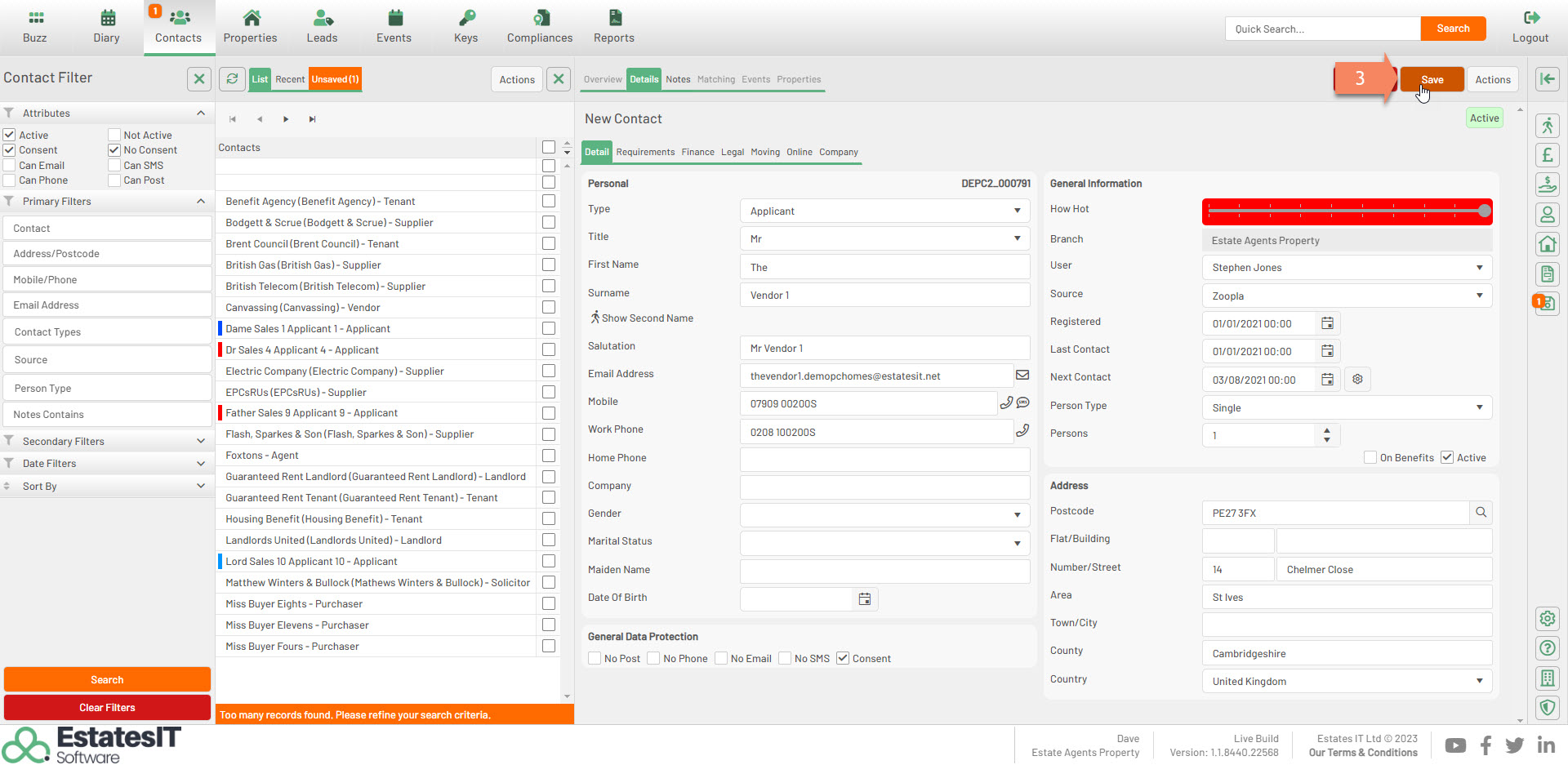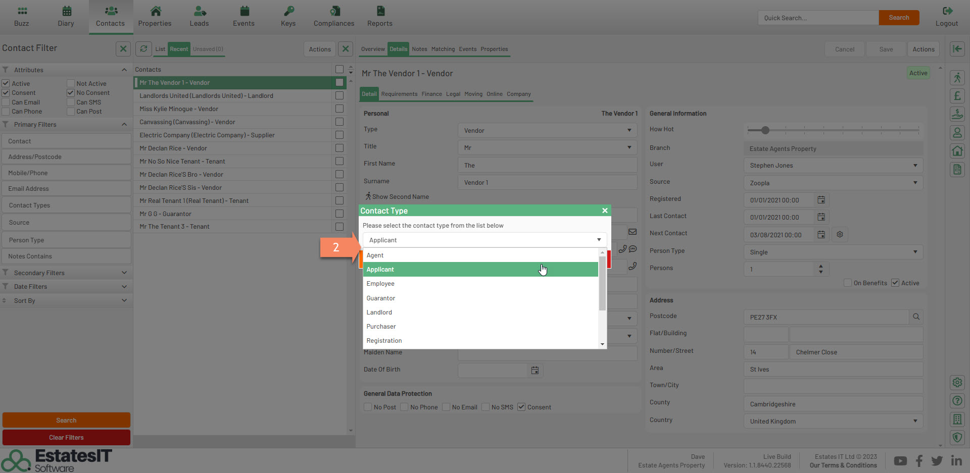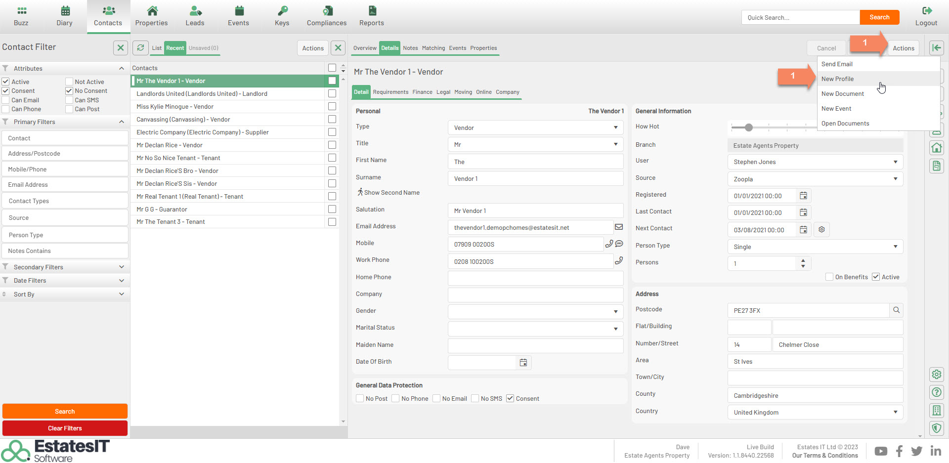 2. Select from the dropdown which contact type you would like the new profile to be.