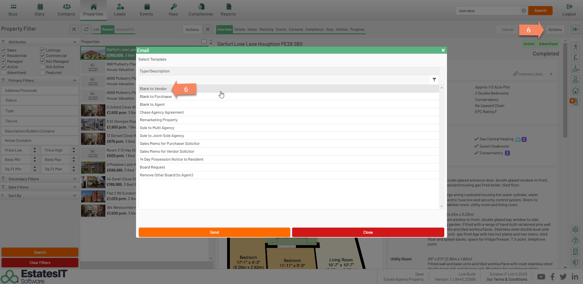6. If you need to Email the particulars to a contact click on Actions then Send Email then click on "Blank to Vendor".