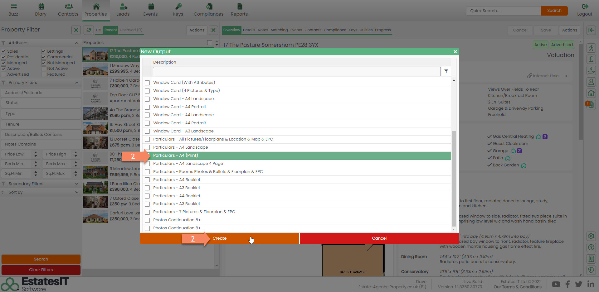 1. To create a set of particulars click on Actions then click on Details & Window Cards.