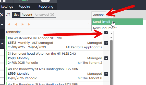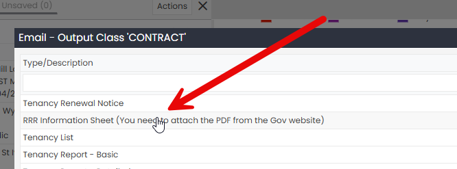Step 3 : From the Actions Menu, select “Send Email” and then “RRR Information Sheet”