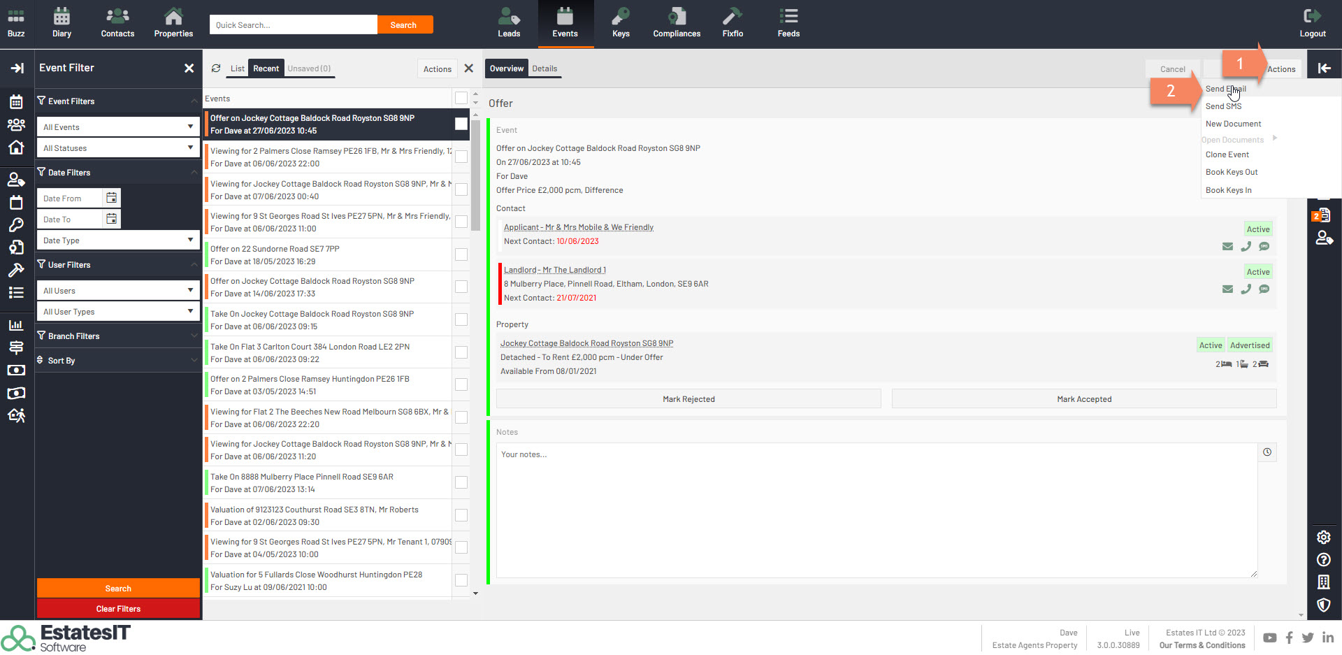 3) Select the correct template you wish to send (Offer Received to Landlord or Tenant).