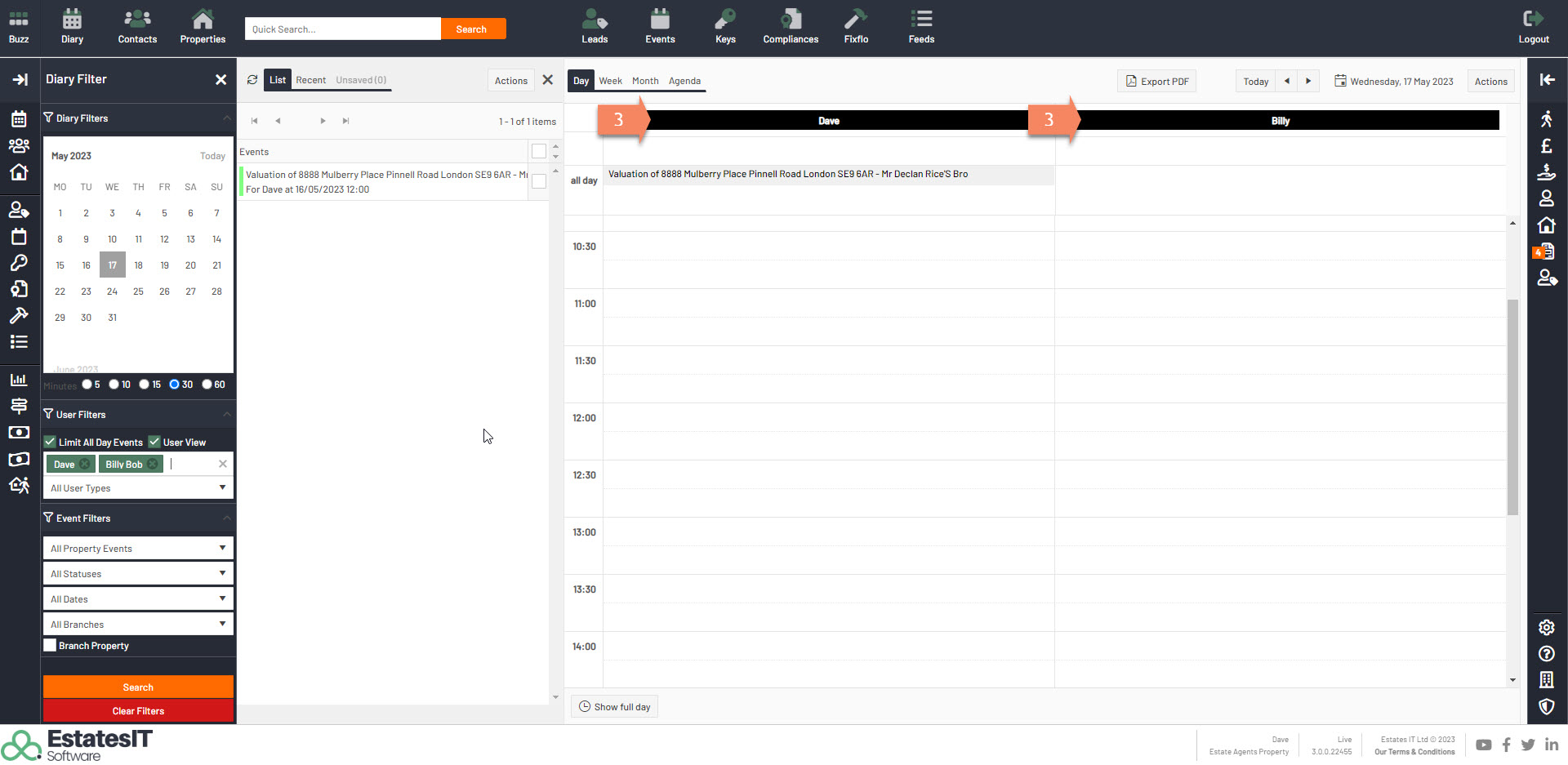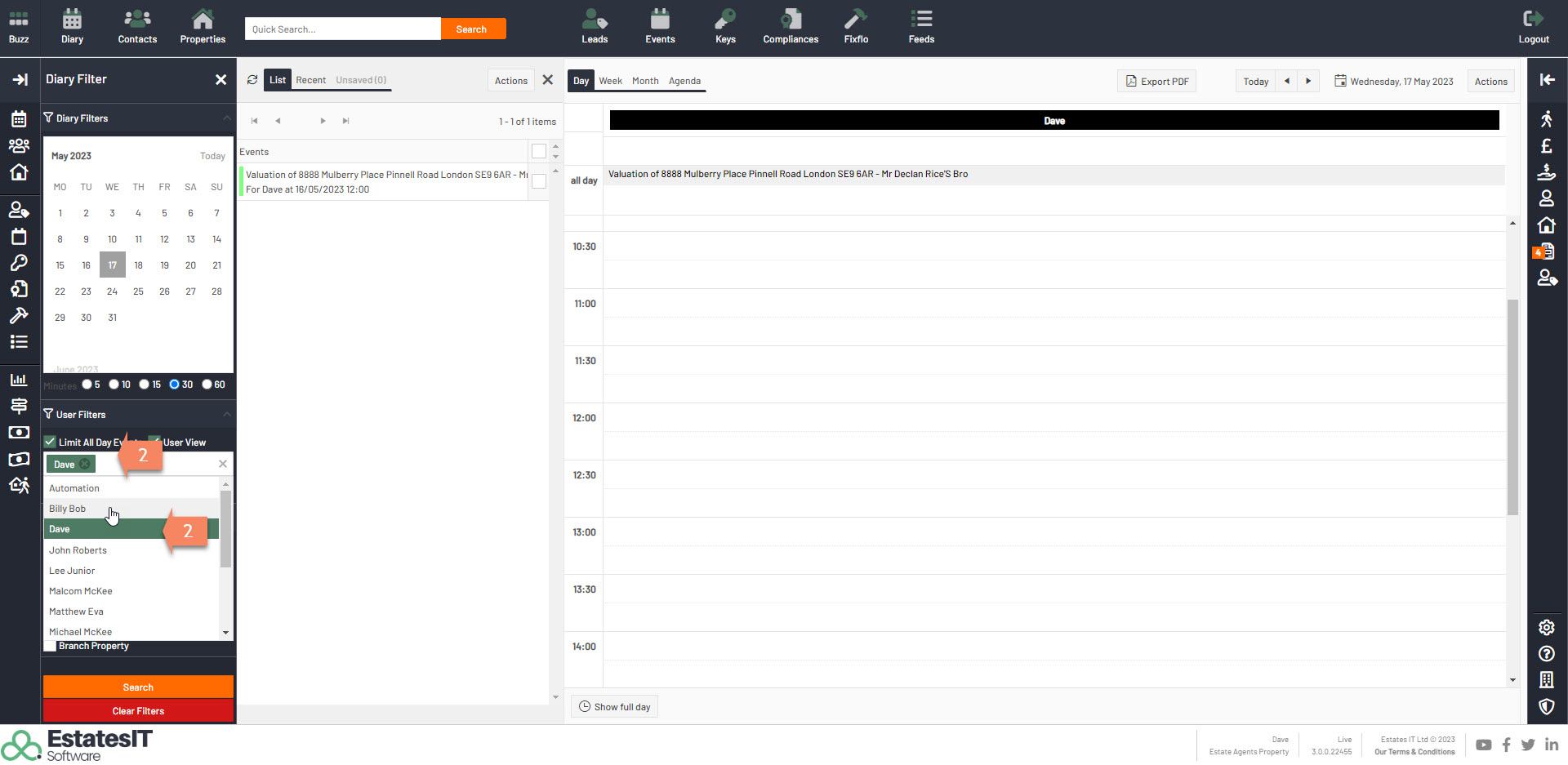 1.Once you are on the diary section tick the User View box.