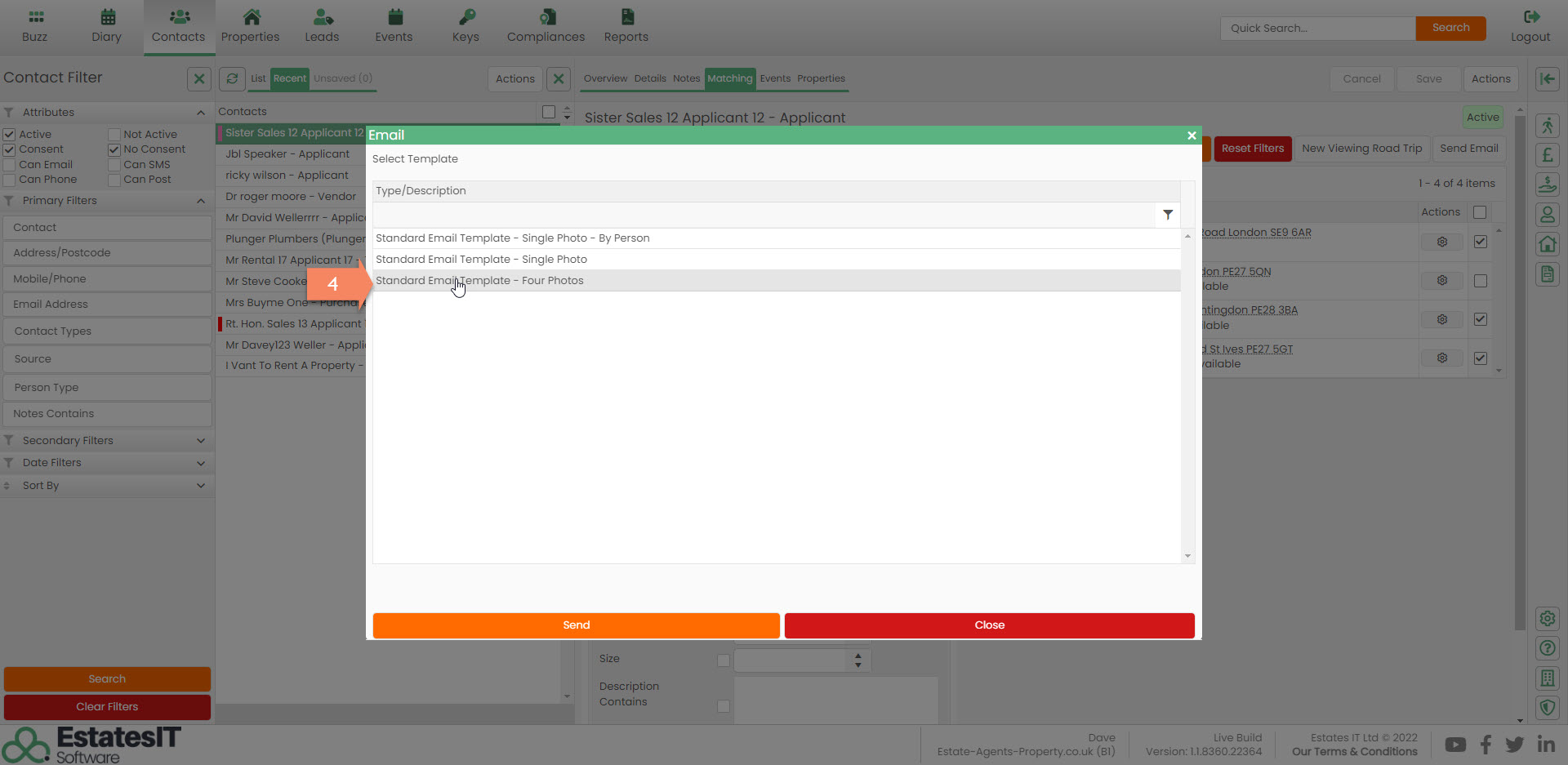 4. Select which template you would like to email the Applicant.