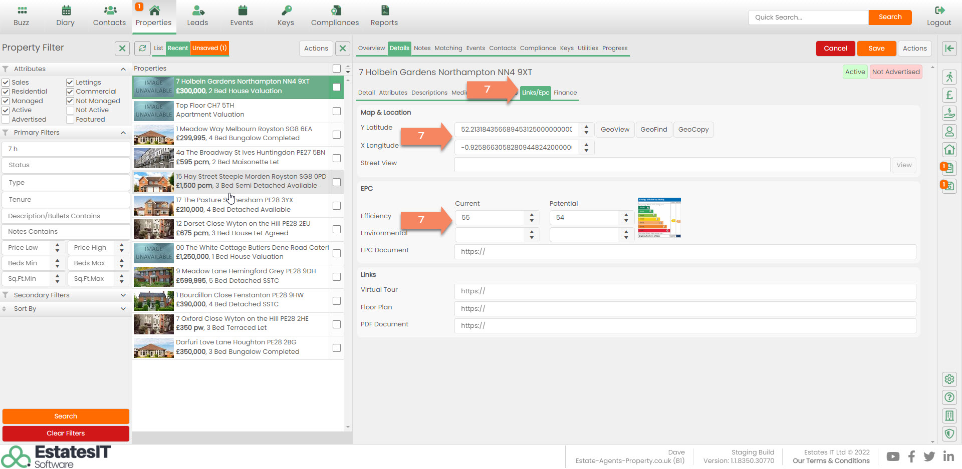7. Links/EPC – EPC/Map Information for websites. Click here to see video