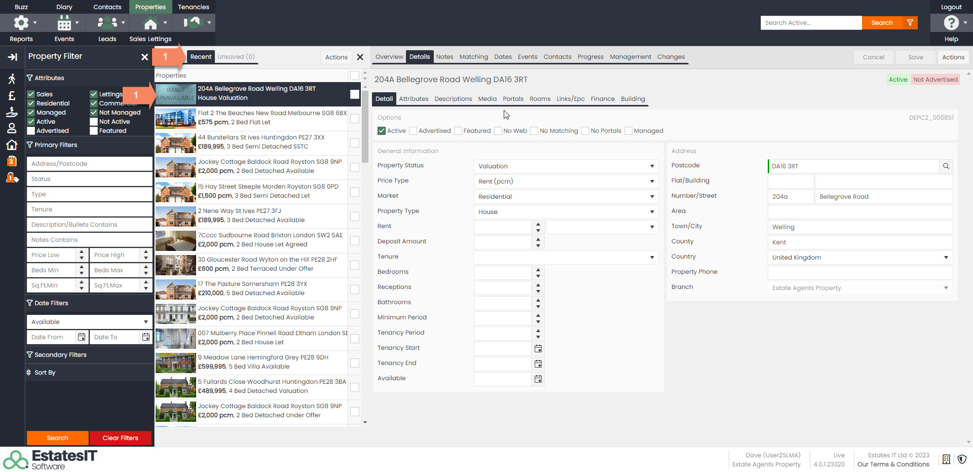 1. If the valuation of the property is recent you will find the property in the Recent tab on the property section.