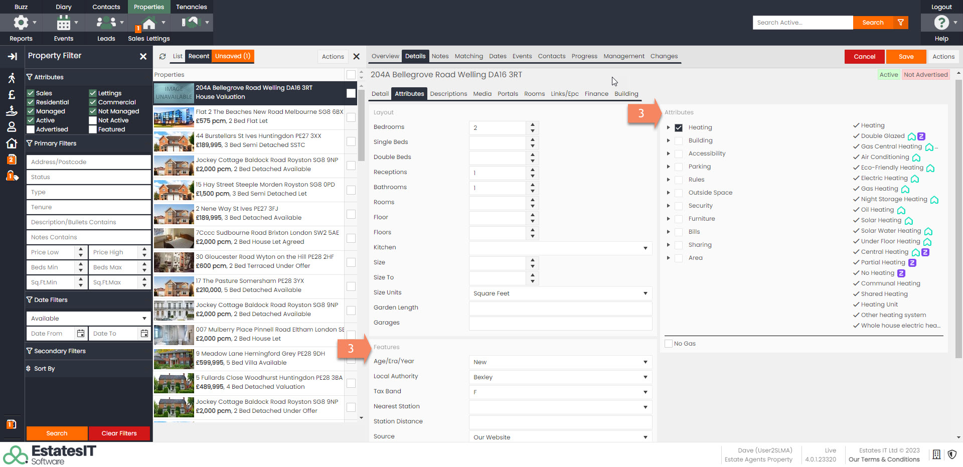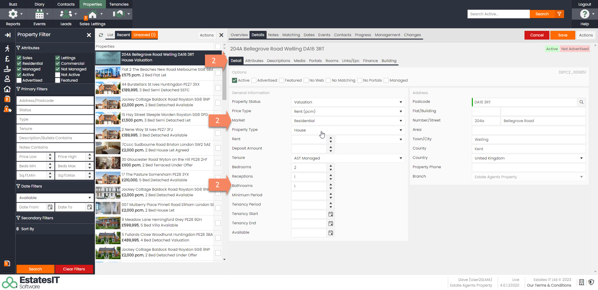 2. Detail – Market/Bedrooms/Receptions/Bathrooms/Tenure.