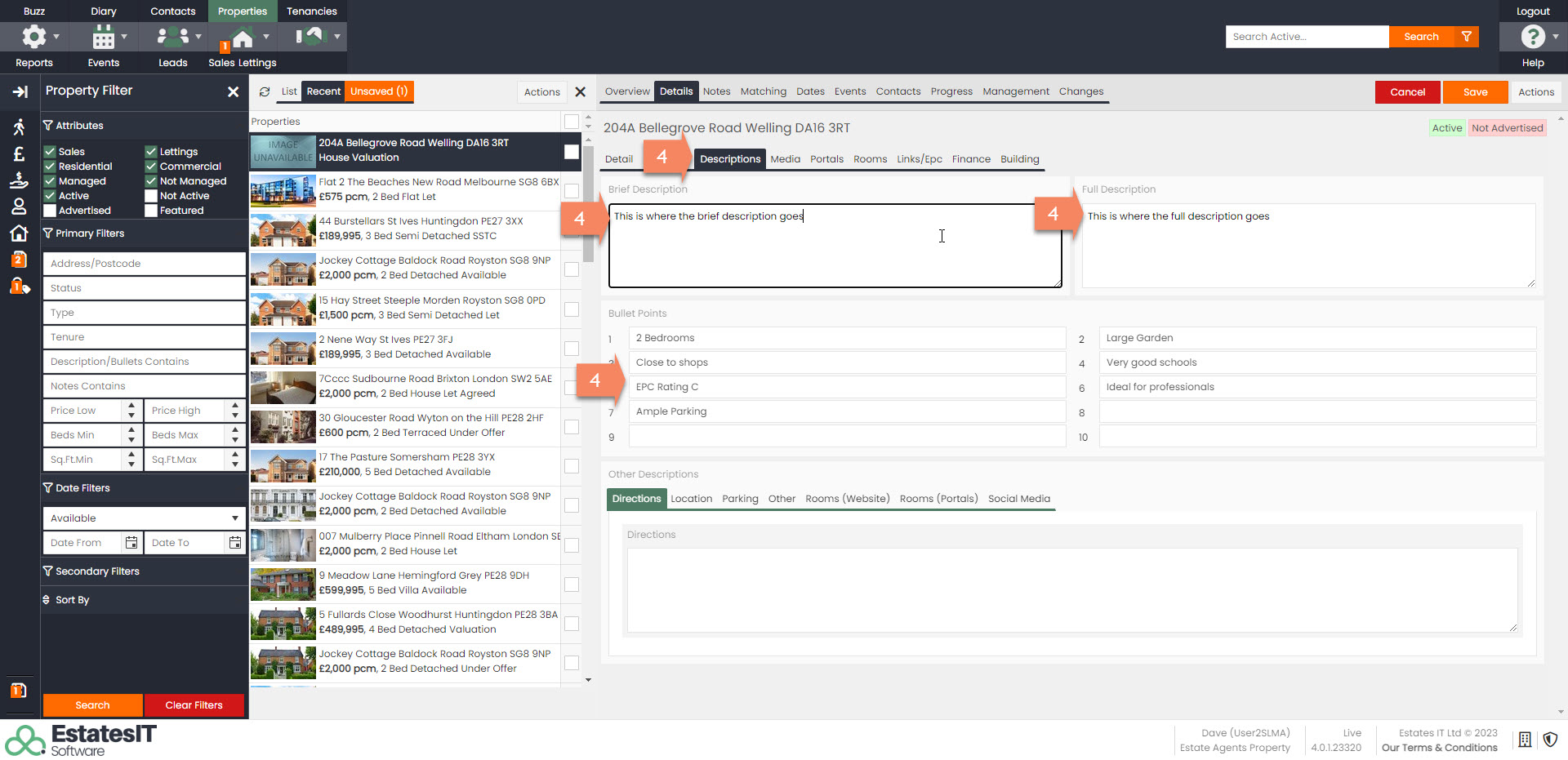 4. Descriptions – Brief & Full Descriptions/Bullet Points.