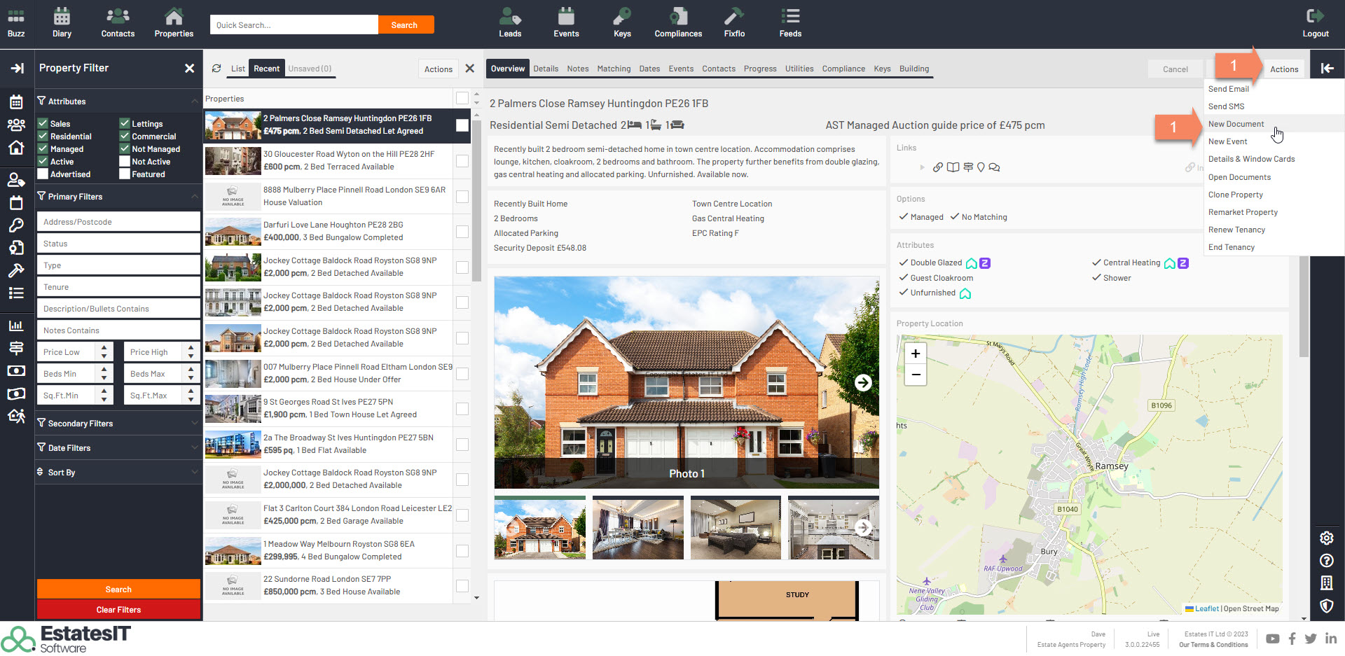 1.Click on the actions button then click on New Document.