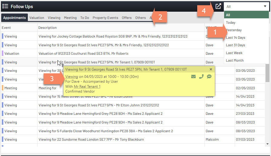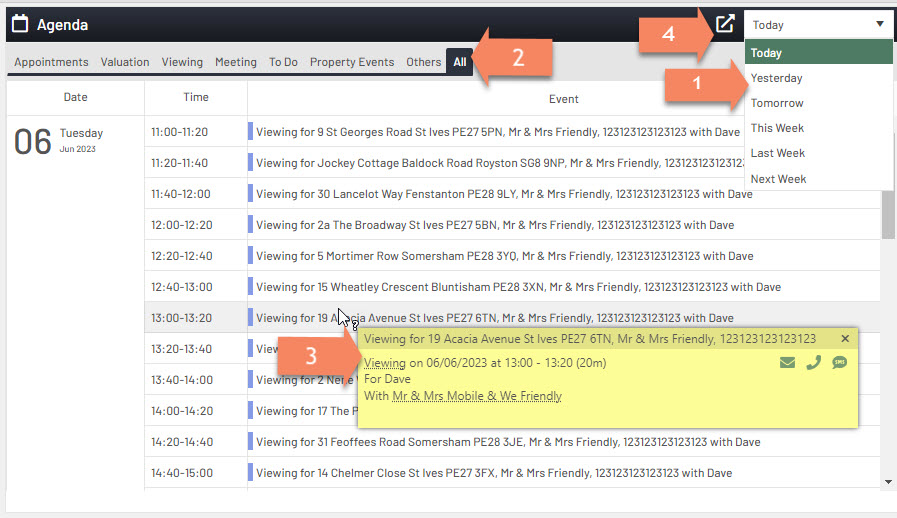 2. You can filter out by event types for example only show Viewings.