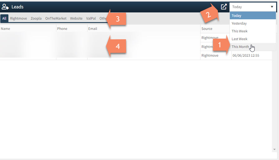 3. If you click on one of the options along the top this will filter the leads sections. This is very important if you want filter the different portals.