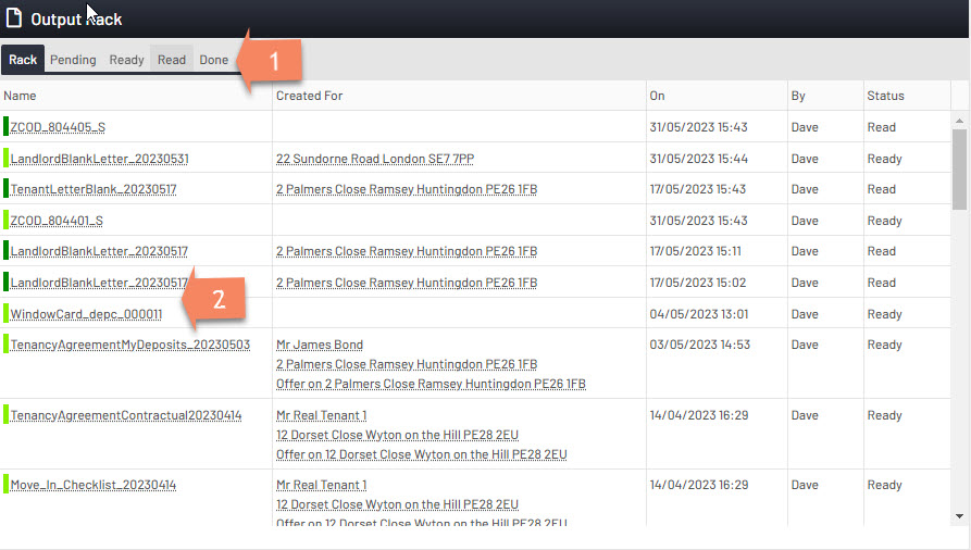1. You can filter your output rack section to show documents/letters which are ready or done or pending.